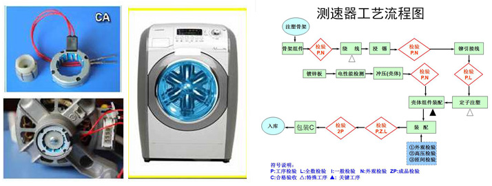 原理: 測(cè)速器用于滾筒式洗衣機(jī)用串激電機(jī),其用途作為電機(jī)的轉(zhuǎn)速的數(shù)據(jù)值傳輸?shù)较匆聶C(jī)的控制系統(tǒng),調(diào)節(jié)洗衣機(jī)的洗凈狀態(tài)。